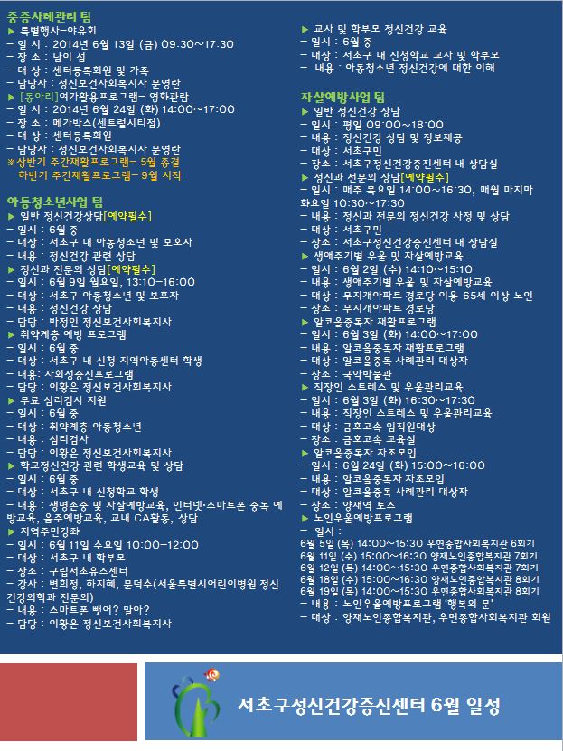 서초구정신건강증진센터 6월 일정입니다.